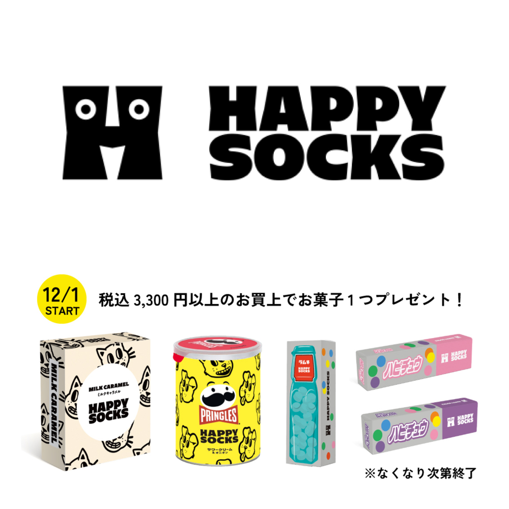 12/1~税込3,300円以上お買上げのお客さまへHAPPY SOCKSのオリジナルお菓子をプレゼント!