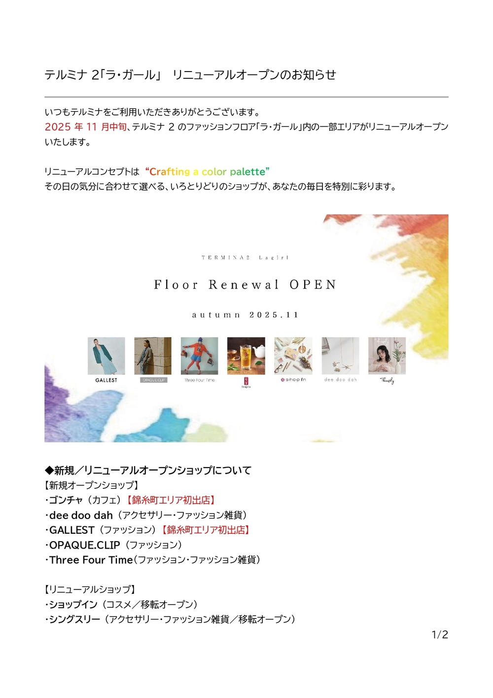 テルミナ2「ラ・ガール」 リニューアルオープンのお知らせ