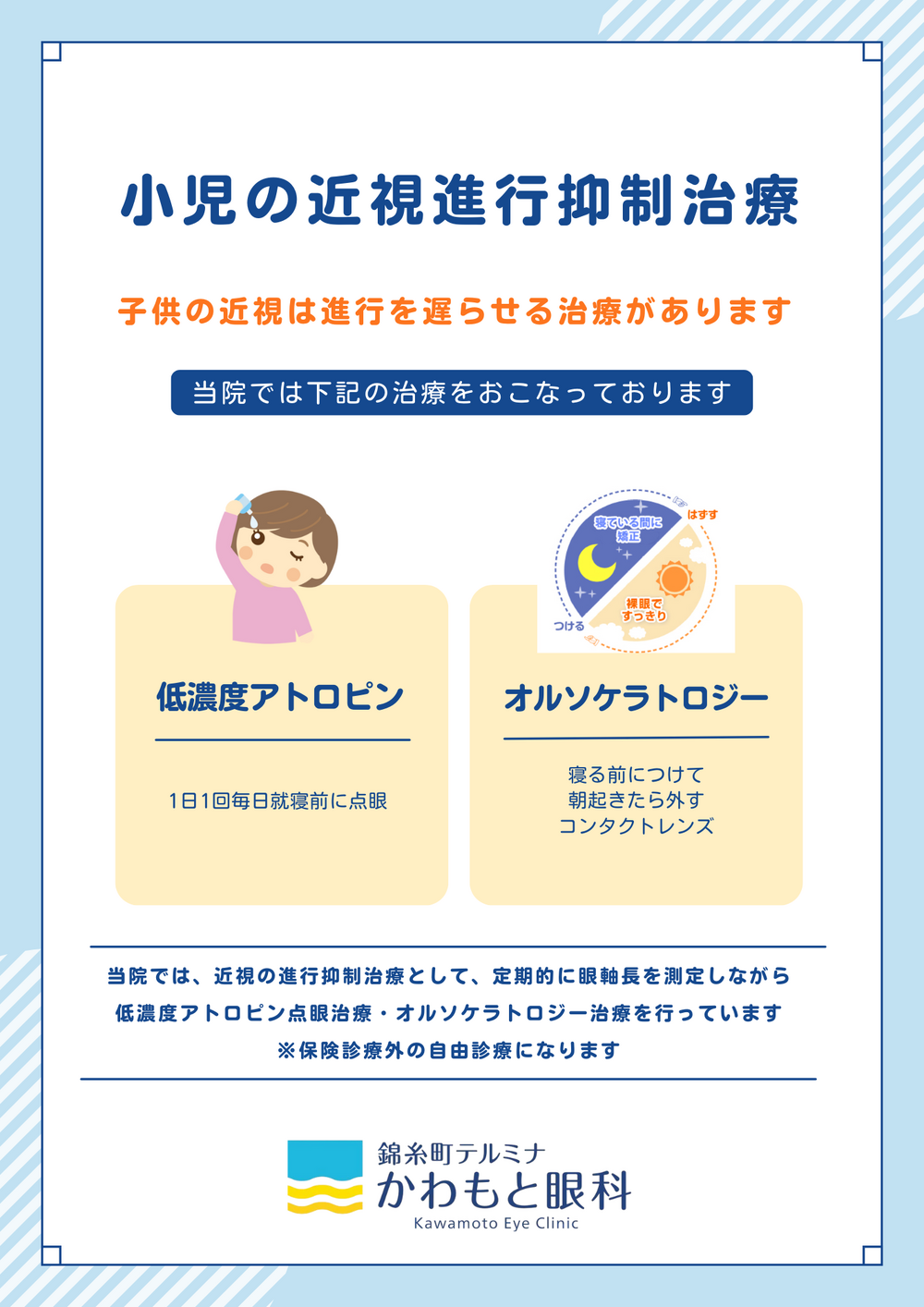 低濃度アトロピン点眼治療・オルソケラトロジー治療を行っています。