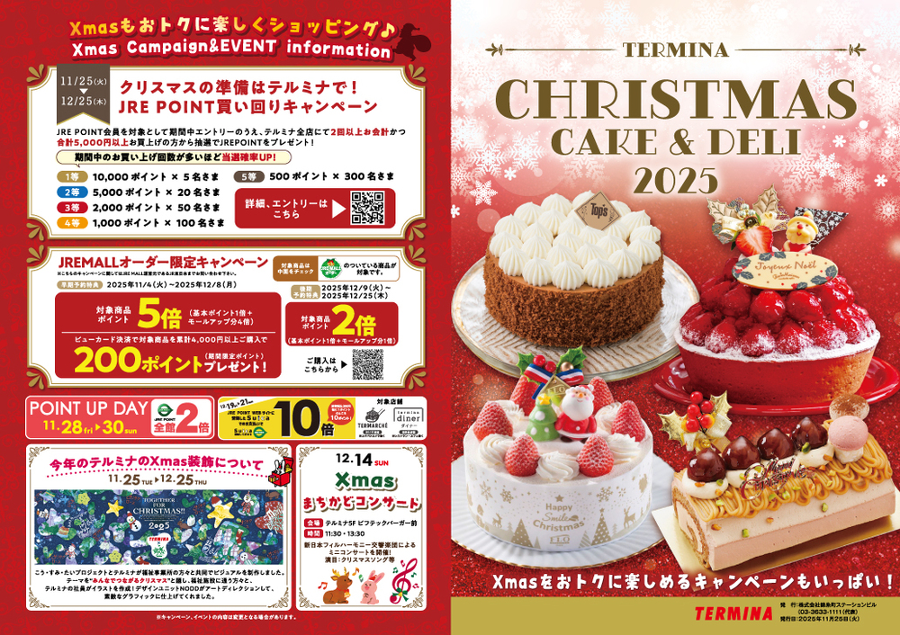JRE POINTを対象として期間中、エントリーのうえテルミナ全店にて2回以上お会計かつ合計5,000円以上お買上げの方から抽選でJRE POINT総額 500,000ポイントプレゼント!